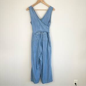 J. Crew Woman's Chambray Wide Leg Wrap Jumpsuit Size 8