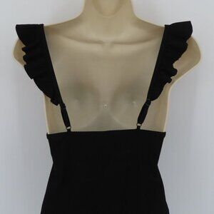 J Crew Women 2 Solid Black Puckered One Piece Swimsuit Ruffle Straps V Neck