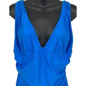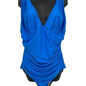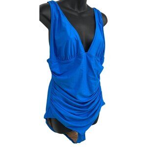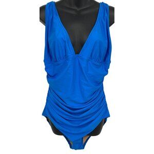 J. Crew Women Blue One-Piece Swimsuit Ruched Deep V-Neckline Slimming New