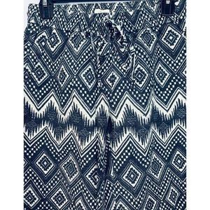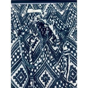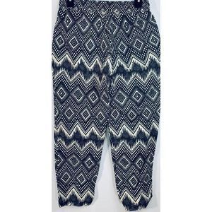 J Crew Womens Elastic Drawstring Waist Ivory Navy Aztec Pattern Size 4 Pockets Orders ship Mondays, Wednesdays and Fridays. Pets are present. Colors are represented in the pictures to the best of my ability. See tag picture for best representation of color. Condition: Preowned Condition Details: - Size 4 - Ivory Navy - Pockets - Elastic Drawstring Waist Measurements laying flat: 13" Waist 19" Hip 9" Rise 24" Inseam 6" Cuff #20426.1