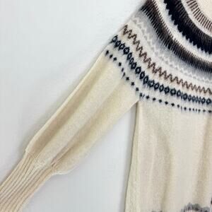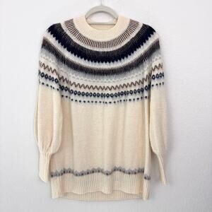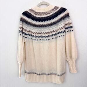 J. Crew Women Fair Isle Yoke Puff Sleeve Sweater Alpaca Wool Blend Cream Size S