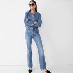 J. Crew Women Full Length Demi Boot Jeans 27P Petite 100% Cotton Blue Denim