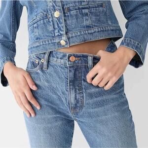 J.Crew Women Full Length Demi Boot Jeans 27P Petite 100% Cotton Blue Denim