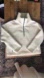 J Crew Women’s Half-Zip Polartec Sherpa Pullover/Sweatshirt in a Size L and white/ivory color. The jacket features a comfy furry fabric, with navy trim and pink accents. There are two zippered pockets on the front hips.
