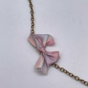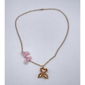 J. Crew Women Rhinestone Pendant Ribbon Necklace Gold Tone Chain Lobster Closure