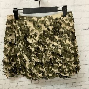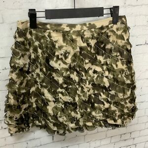 J. Crew Women 100% Silk Army Green Camouflage Animal Print Mini Skirt Sz.4 (T2).