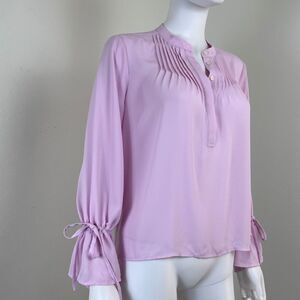 J Crew Women Size S Petite Pink Pleated Pintuck Sheer Chiffon Blouse NEW Top Tie