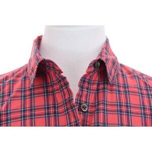J Crew Women Sz 0 Christmas Plaid Tartan Print Oversize Popover Shirt Top Red xs