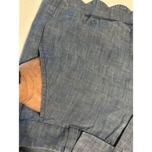J Crew Women Sz 00 Chambray short scalloped hem Blue Pockets Cotton