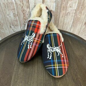 J. Crew Women Tartan Plaid Dalmatian Slippers Faux Shearling Loafer Slipper Size 6