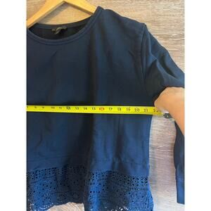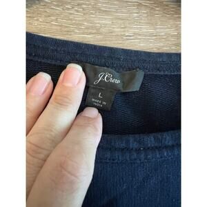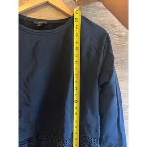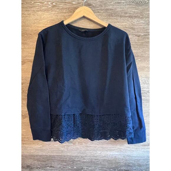 J Crew Women Top Sz Large Navy Blue Eyelet Hem Preppy Long Sleeves Cotton Poplin