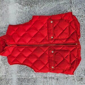J. Crew Women Vest Red Quilted Down and Feather Puffer Zip Up Jacket Coat Size M