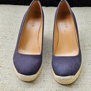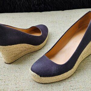 J. Crew Women Wedge Heel Shoes Blue Canvas Upper Espadrille Sandal Size 5.5M