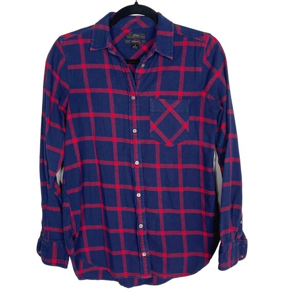 J Crew Womens 0 Navy Blue Red Classic Fit Boy Shirt in Block Plaid Button Down