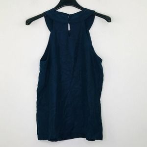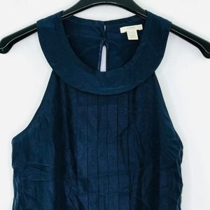 J Crew Women's 0 Tank Top Blue Silk Metallic Vita Cami Pleated Halter 10181 BP22