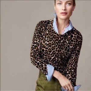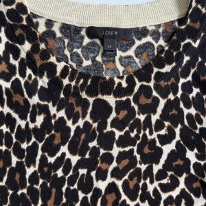 Tags merino wool top leopard print animal print size xs 3/4 sleeve crew neck classic neutral soft breathable lightweight fall winter layering chic timeless stylish elegant cozy comfy luxe natural fiber preloved minimalist versatile workwear
