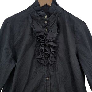 J. Crew Womens 14 Black Ruffle Button Up Shirt