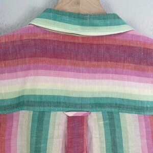 J Crew Womens 2 Multicolor Striped Linen Cotton Button Up Shirt Long Sleeve Top