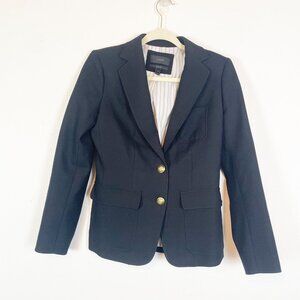 J. Crew Women's 2 Navy Rhodes Blazer Gold Button Italian Wool Careerwear Preppy