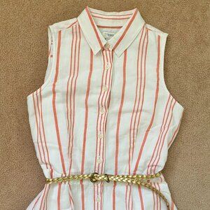 J. Crew Women's 2 Sleeveless Shirt Dress Button White Red Striped Knee Length