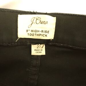 J Crew Womens 27 Black 9" High Rise Skinny Toothpick Jeans Cotton Blend