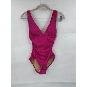 J. Crew Women's 4 Pink Ruched V-Neck One-Piece Swimsuit Vacation NEW Resortwear