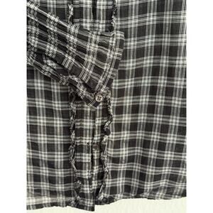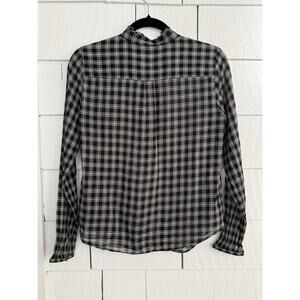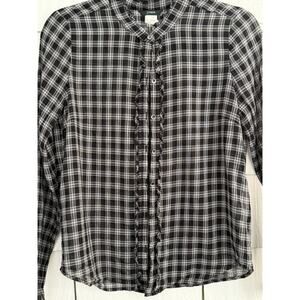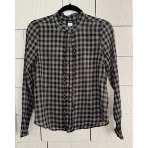 J. Crew Women's SIze 6 Lightweight Black White Silver Plaid Button Front Top Ruffle Trim Academia Preppy