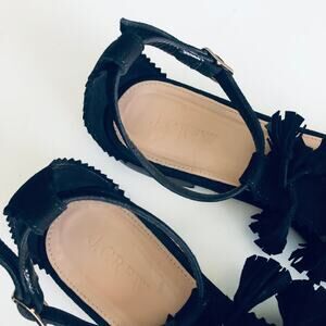 J. Crew Women's 7.5 Black Suede Tassel Sandal Flat T Strap