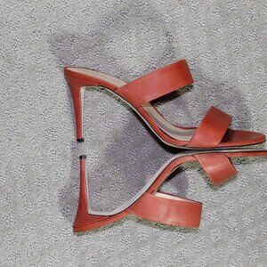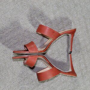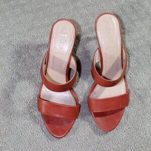 J. Crew Women's 9 Lena Two Strap 3.5" Heeled Slides Dark Cognac
