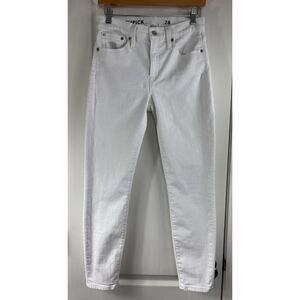 J Crew Women's 9" Mid-Rise Toothpick Jeans White Denim Stretch Size 28 *READ*