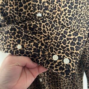 J Crew Women’s Animal Print Button Down Poplin Shirt in Signature Fit Size XL