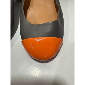J. Crew Women's Anya Cap-Toe Ballet Flat Leather Grey Orange Size 8.5