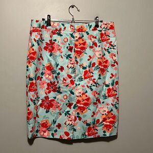 J. Crew Women's Aqua Multicolor Floral Textured Above Knee Pencil Skirt Size 10