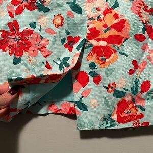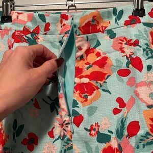 Brighten up your wardrobe with this J. Crew women's pencil skirt, featuring a vibrant aqua background adorned with multicolor floral patterns. The skirt is made from a textured 100% cotton fabric with a sleek polyester lining for added comfort. Its timeless pencil silhouette offers a flattering fit, while the concealed back zipper ensures a polished look. Perfect for pairing with casual or dressy tops, this skirt is a versatile addition to any wardrobe. Ideal for work, brunch, or summer events, it brings a cheerful pop of color to your ensemble.