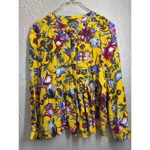 J Crew Womens Autumn Color Silk Pleated Popover Top Gold Floral Print Size Small