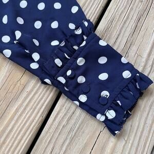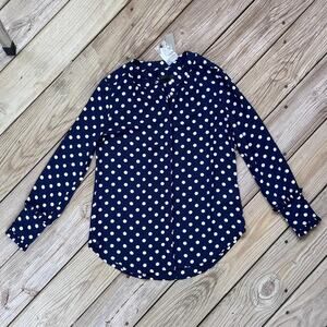 J. Crew Women's Band-Collar Shirt With Ruffle Cuffs In Polka Dot Size XS. NEW