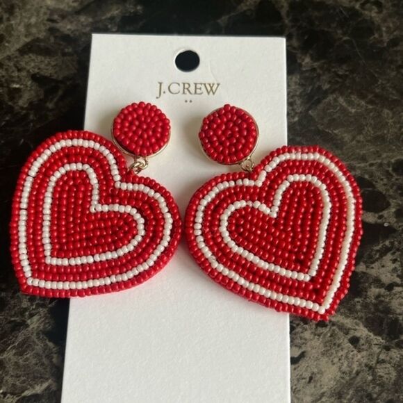 J Crew Women's Beaded Red Heart Elegant Earrings Hypoallergenic Party Prom