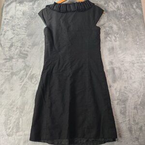 J Crew Womens Black 100% Wool Ruffle Neck Dress 0 Career Lined Classic Office