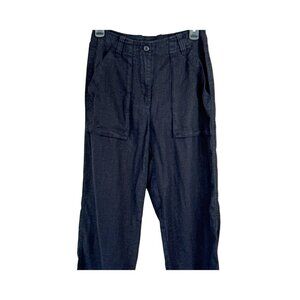 J. Crew Women's Black Linen Blend Tapered Leg Pockets Cargo Pants Size 0