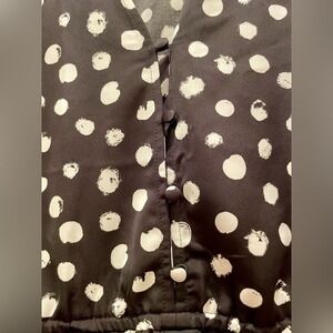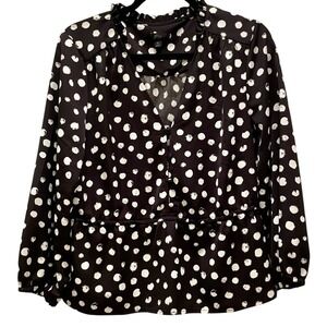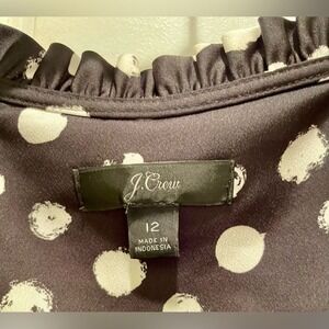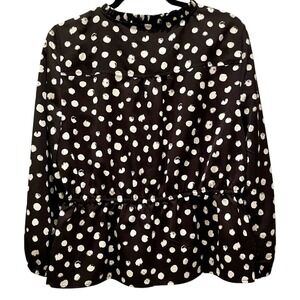 J. Crew Women's Black Peplum Blouse in Painted Dot Satiny Top Size 12