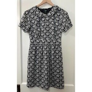 J Crew Women's Black White Bow Print Short Sleeve Dress Size 2
