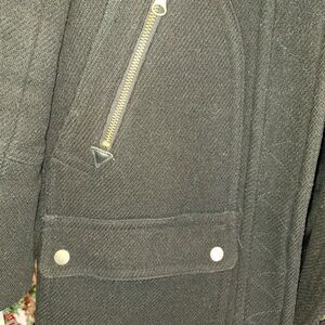 Gorgeous and well loved wool coat by J. Crew. Bronze zipper and snap detail, tailored cut makes for a flattering and warm design. Removable hood. *Area of wear through top layer is pictured.* Lots of life left in this classic! ***scarf NOT included***
