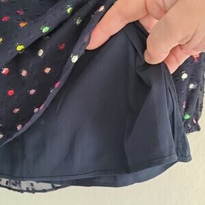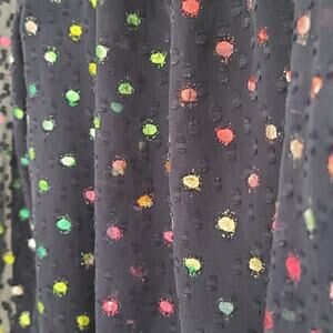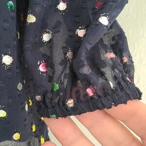 Here is a new J. Crew blouse in size 2XS that brings a whimsical flair to your wardrobe. This elegant top features a unique blue rainbow polka dot print on lightweight chiffon, ensuring breathability and a graceful drape. With a round neckline, easy pullover closure, and long balloon sleeves, this blouse effortlessly blends contemporary style with classic charm. Perfect for transitional wear during summer, fall, and spring, it is versatile enough for travel, social gatherings, casual outings, and professional settings. Add this standout piece to your collection for a fresh, vibrant look—order now for fast shipping.
