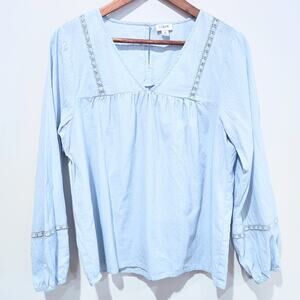 J. Crew Womens Blue Lightweight Cotton Top Size Medium Cottage Boho Peasant