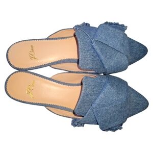 Step out in style with these J. Crew blue denim mules. Perfect for casual outings, these shoes offer both comfort and fashion.