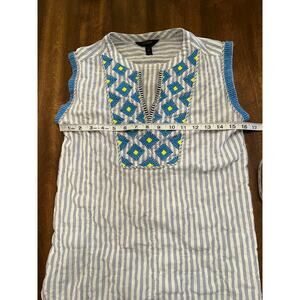 J. Crew Women's Blue Sleeveless Boho Sunburst Embroidered Crinkle Blouse Size 0
