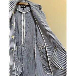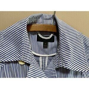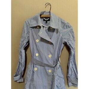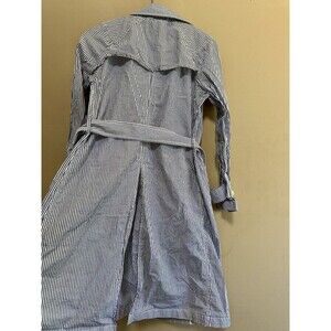 J Crew Womens Blue Striped Double-Breasted Cotton Trench Coat Pockets Size 2