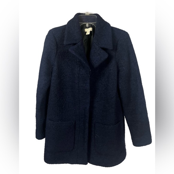 J. Crew Women’s Boucle Wool Blend Navy Hidden Placket Pea Coat- Size 2