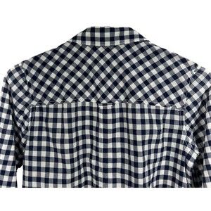 J Crew Women's Boy Shirt Sz 00 Button Down Navy Blue Check Long Sleeve