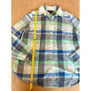 Like new condition women’s j. Crew buttons down shirt. Plaid design. Size 8. Long sleeved. Collared. 100% cotton.